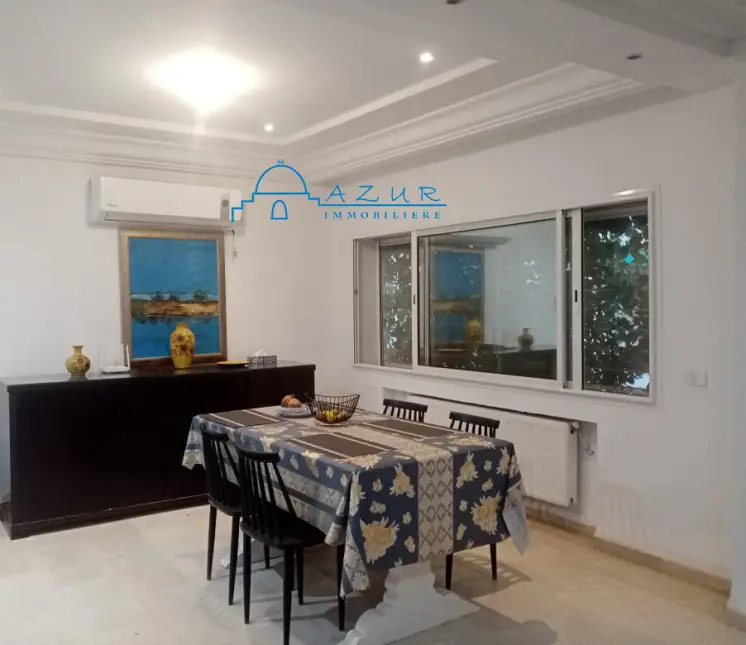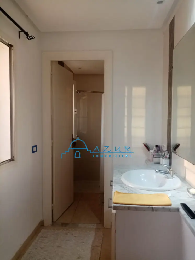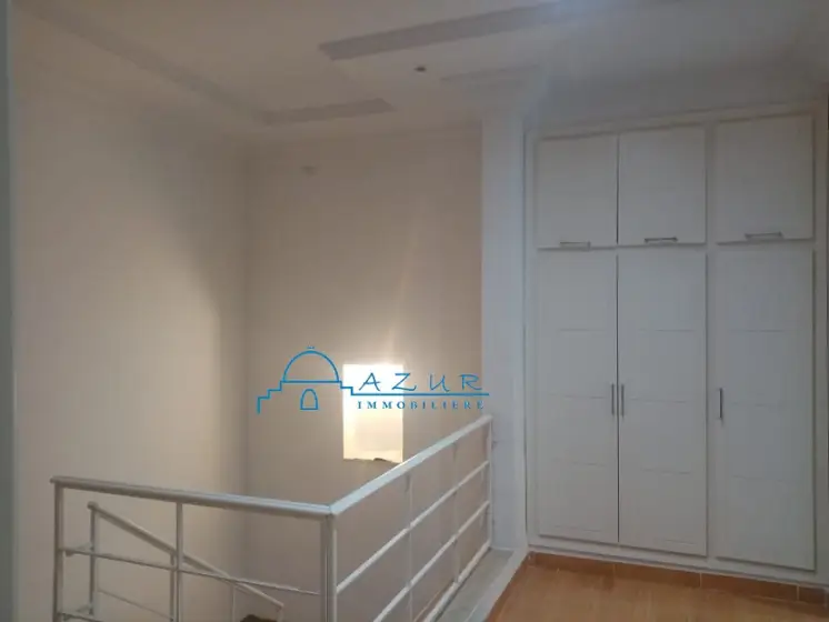 A LOUER chez l'agence Azur immobilière Nabeul , une belle villa , idéalement située à Hammamet ,à proximité de la plage , des hôtels et des restaurants , dans un cartier chic, résidentiel et paisible . La villa est irriguée sur 2 niveaux communicants , elle est composée de : suite parentale donnant sur une belle terrasse , deux grandes chambres , salon . salle à manger , cuisine , agréable jardin arboré et gazonné , abri pour la voiture La villa est idéale pour une vie tranquille et agréable . Profitez de moments conviviaux sur la terrasse extérieure. Veuillez visiter , vous serez satisfait , contactez Tel / WhatsApp 29 323 344 (visite gratuite )