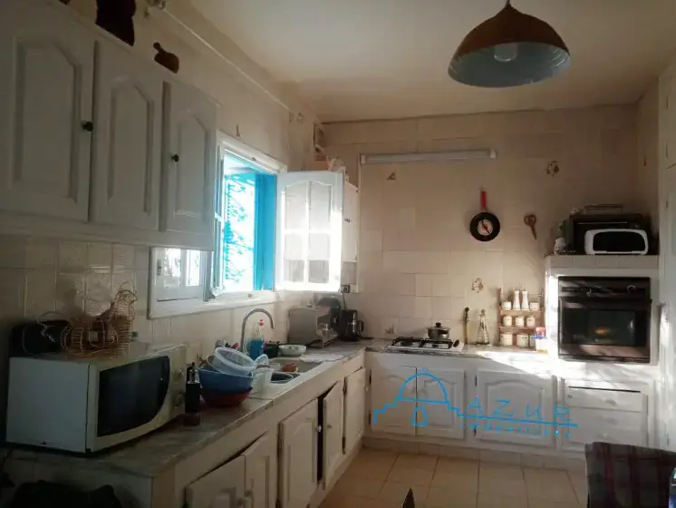 L'Agence Azur immobilière vous offre à vendre une agréable villa en bonne état située à Nabeul , dans une cité calme et verdoyante. La villa est construite sur un terrain de 430 m² et d'une superficie couverte de 500 m² , elle est irriguée sur deux niveaux communicants : Rez de chaussé et un étage , composée de 4 grandes pièces , cuisine , 2 salles de bain , jardin et garage
