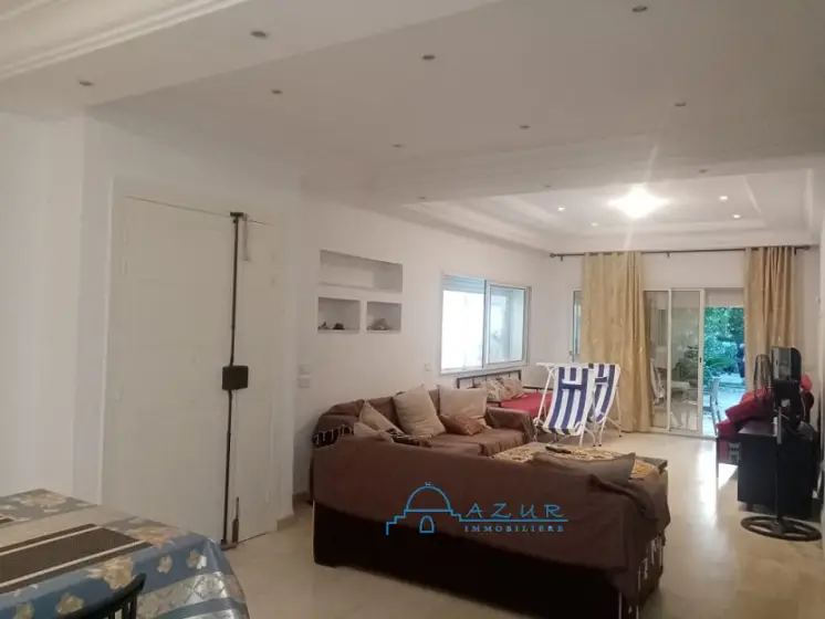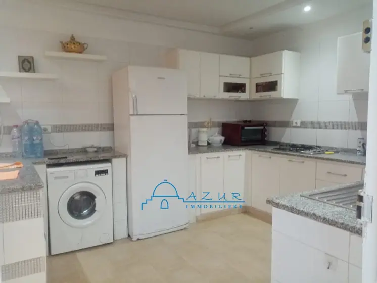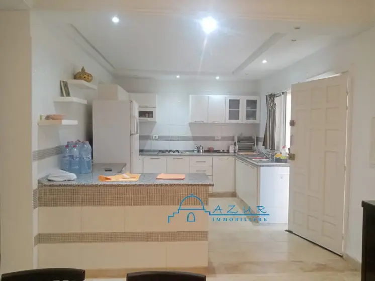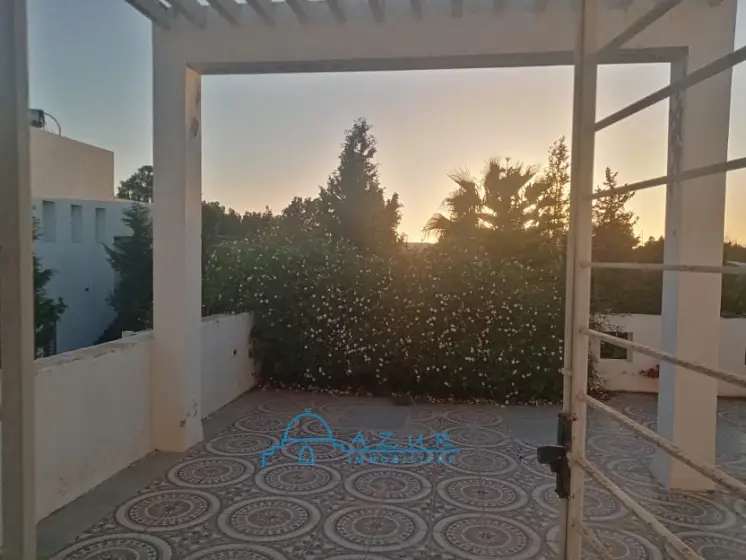 A LOUER chez l'agence Azur immobilière Nabeul , une belle villa , idéalement située à Hammamet ,à proximité de la plage , des hôtels et des restaurants , dans un cartier chic, résidentiel et paisible . La villa est irriguée sur 2 niveaux communicants , elle est composée de : suite parentale donnant sur une belle terrasse , deux grandes chambres , salon . salle à manger , cuisine , agréable jardin arboré et gazonné , abri pour la voiture La villa est idéale pour une vie tranquille et agréable . Profitez de moments conviviaux sur la terrasse extérieure. Veuillez visiter , vous serez satisfait , contactez Tel / WhatsApp 29 323 344 (visite gratuite )
