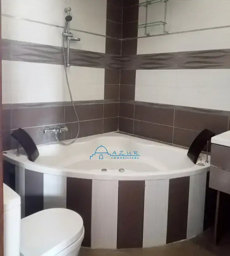 A VENDRE REZ DE CHAUSSE TRES HAUT STANDING ⭐A NABEUL Venez voir ce Rez de chaussé d'une villa , il est totalement indépendant, situé à Nabeul dans un endroit verdoyant loin de l'humidité , dans une cité calme et sélectionnée , à proximité de toute les commodités. Le Rez de chaussé est privilégié d'une excellente orientation , sur deux façades , construite sur deux niveaux communicants; Rez de jardin et un rez de chaussé , d'une superficie totale de 292 m² et d'une superficie couverte de 365 m² *Rez de jardin : grand salon, . salle à manger , cuisine immense bien équipée ouverte , une chambre entière avec dressing *Rez de chaussé : suite parentale ( chambre , dressing , salle de douche ) 2 chambres lumineuses , salle de bain jacuzzi , grand salon .salle à manger , 2 ème salle de douche . petit jardin ✔Isolation thermique et phonique ✔Chauffage centrale ✔System d'alarme ✔Caméra de surveillance ✔Portes et fenêtres automatiques ✔2 portes électriques ✔Respirateur central ✔Jardin d'hivers etc .. N.B Le rez de chaussé est avec titre Blue individuel Pour plus des renseignement veuillez contacter 📞 29 323 344 Tel / Wat sup